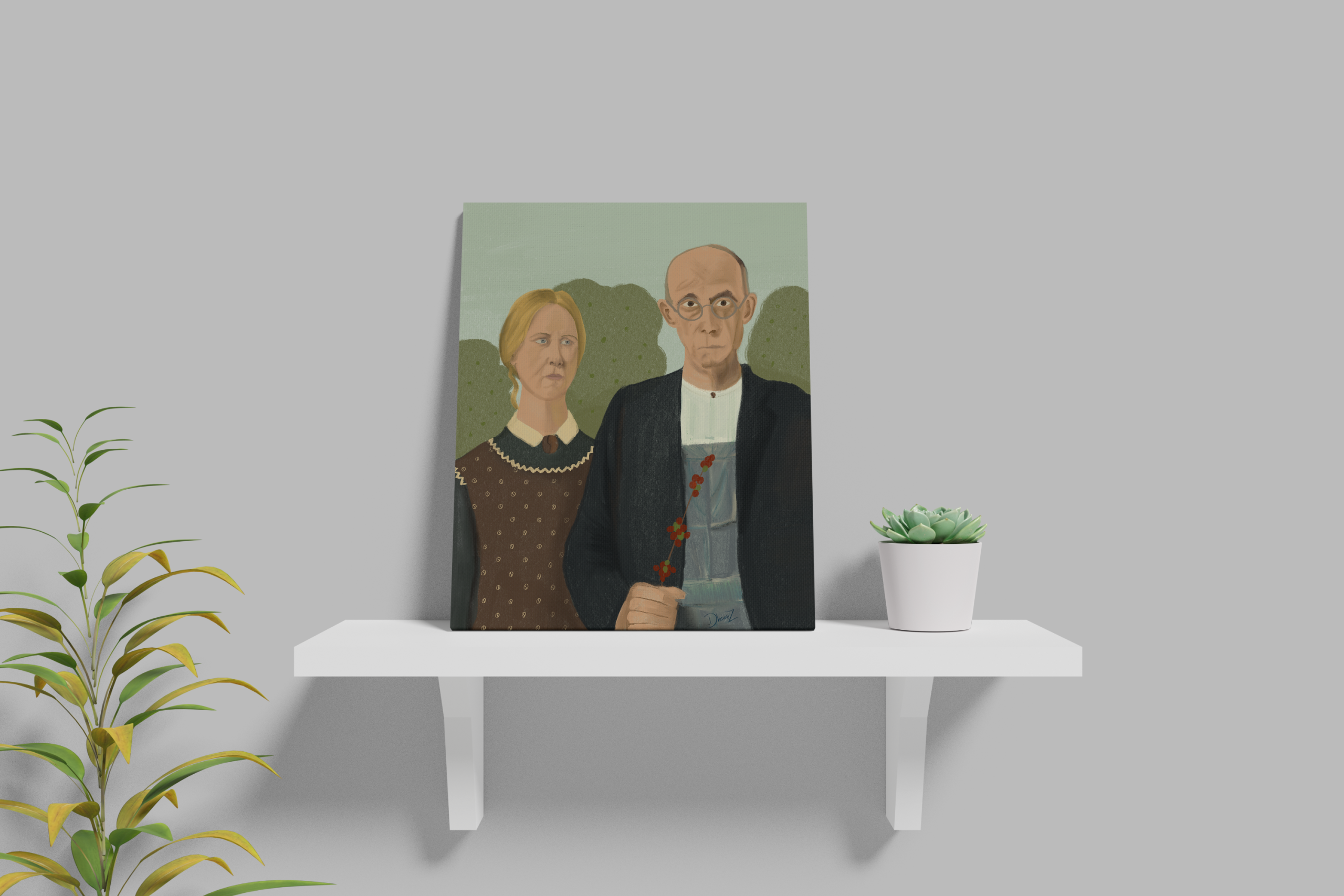 Ilustración original de @dhawiiz.illustration | Inspirada en American Gothic de Grant Wood